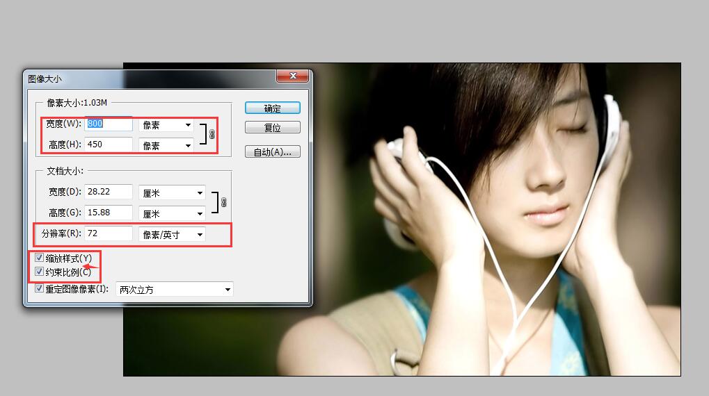 第一步;在phptoshop中打开你需要处理的图片,然后点击图像→图像大小,如图所示,图片的宽度尽量保持在800~900像素之间(具体看网站设计的内容页宽度大小),高度按照比例即可!分辨率为72,我们可以看到此时图片大小为1.03M,显然是不符合网站所用!